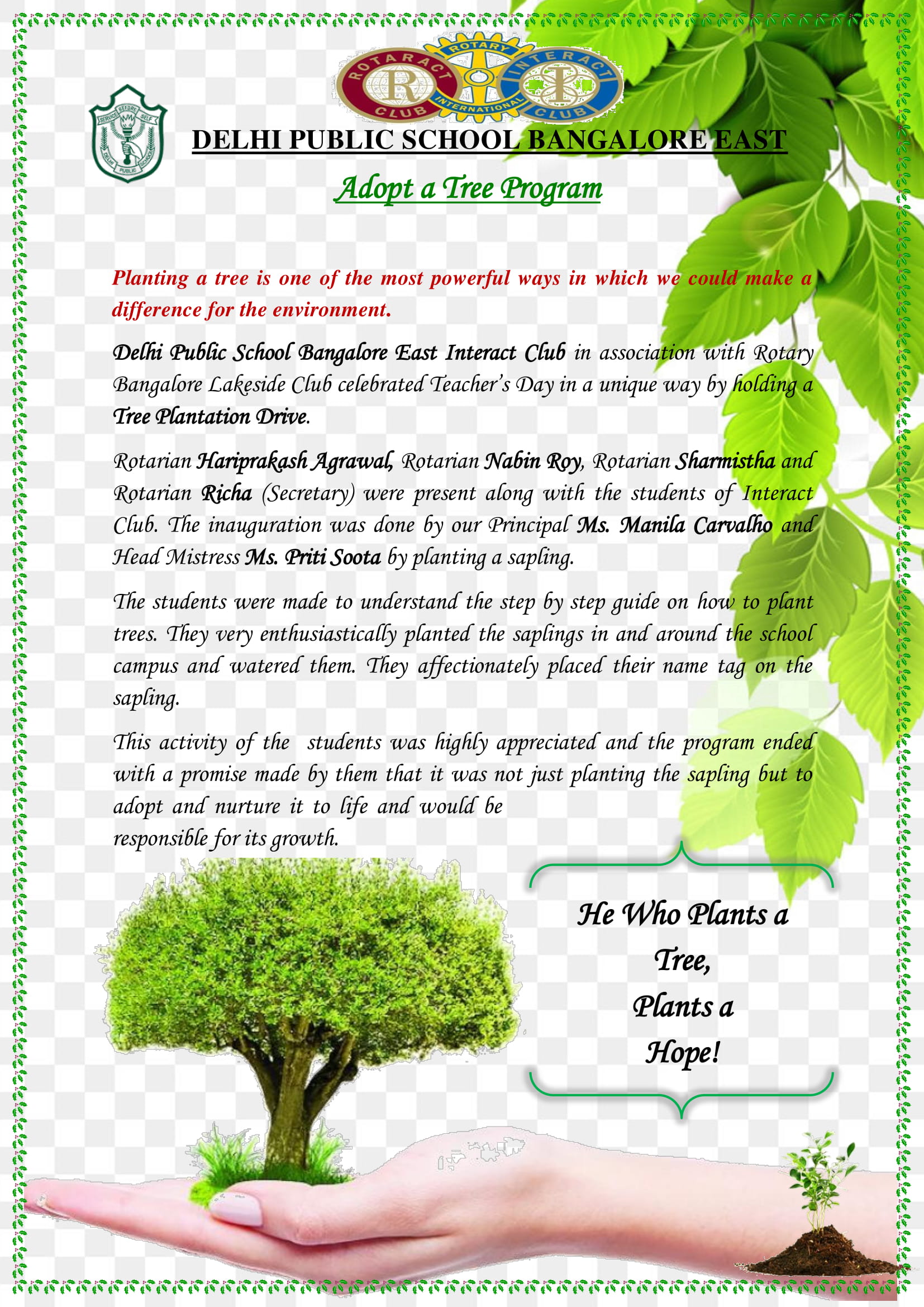 Adopt a Tree Program! Share: Previous post 2nd Independence Day Inter School Kabaddi Tournament Next post Newsletter from the Principal Desk– August’18