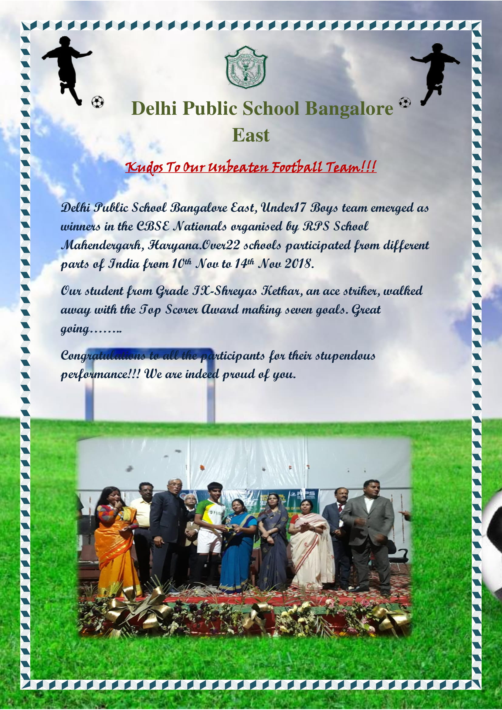 Kudos To Our Unbeaten Football Team! Share: Previous post SPORTS NEWS LETTER -OCTOBER-2018 Next post Newsletter from the Principal Desk– October’18