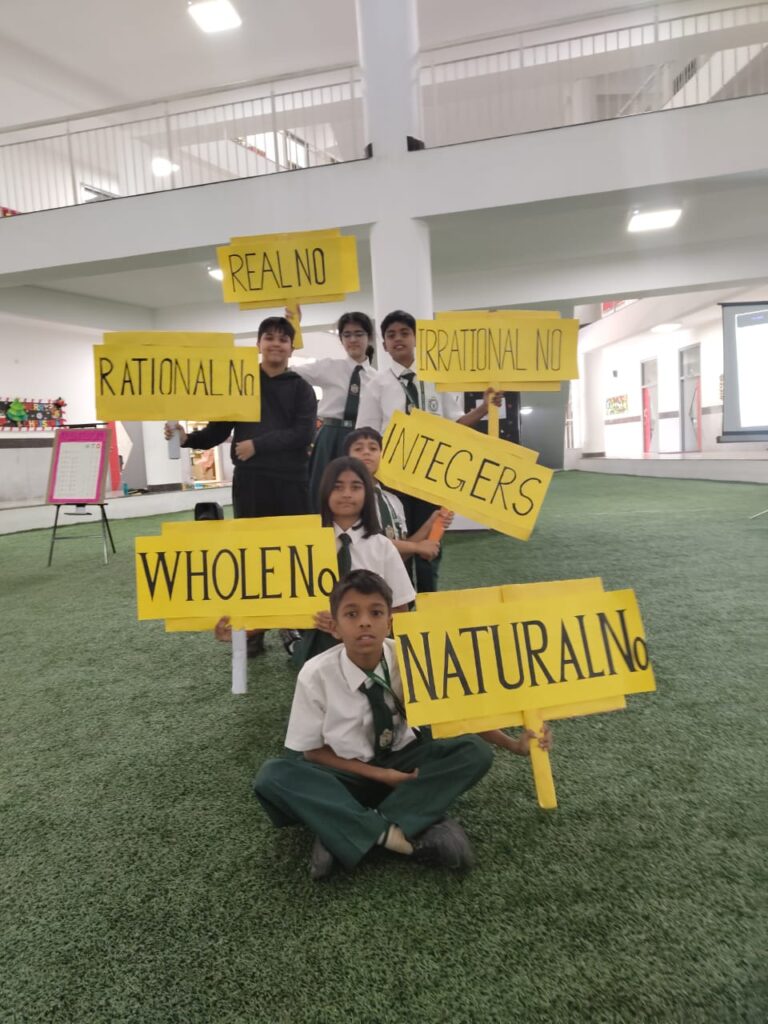 The students presented multiple activities including a musical dance about shapes and a short and sweet skit about numbers. Different types of Numbers like Natural Numbers, Whole Numbers, Integers, Rational , Irrational and Real Numbers were explained using song and dance.