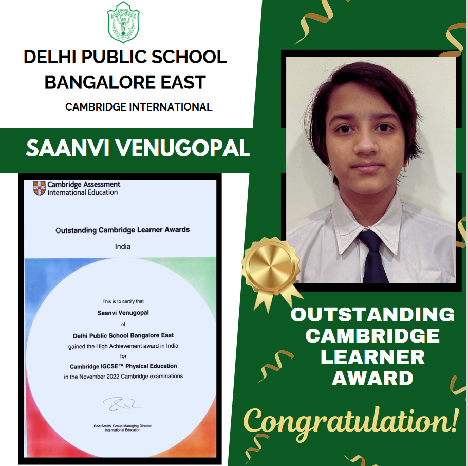 We are delighted to share that our Student Saanvi Venugopal has received the OUTSTANDING LEARNER AWARD from CAMBRIDGE.